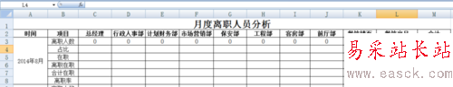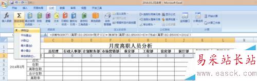 假設我們在同一個工作薄中建了一張新的工作表“統計”,跨表統計。其中所有在職人員信息在工作表“總表”中,離職人員信息在工作表“離職”中。