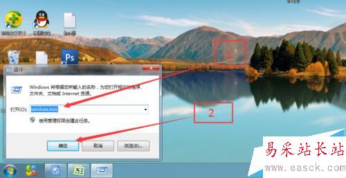 2、在輸入框中輸入services.msc,點擊確定進入。