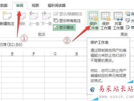 6、這樣“C6”單元格中的公式就被隱藏了。要恢復顯示可以單擊“審閱”- “撤銷工作表保護”,如果剛才設置了密碼,這時需要輸入密碼才能撤銷。