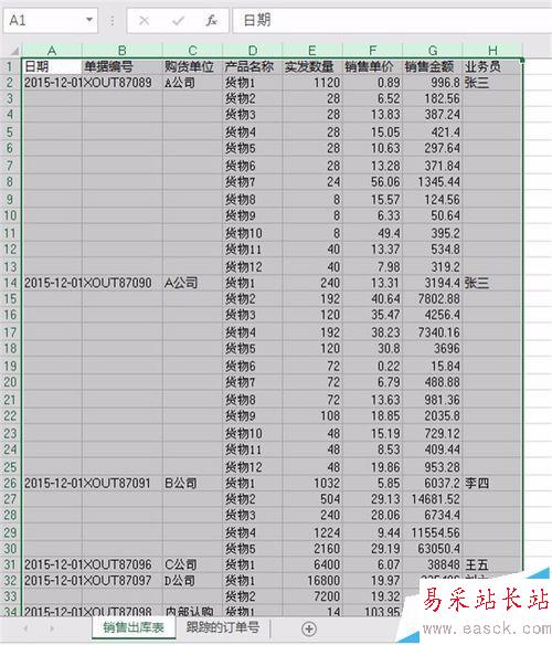 規(guī)范銷售出庫表——補值。ERP或者電商系統(tǒng)導出來的數(shù)據(jù)表格,有可能存有空白格,需要填齊,這樣才能用數(shù)據(jù)模型和數(shù)據(jù)透視表。補值也很簡單,空白格就是用上一行的值填補即可。