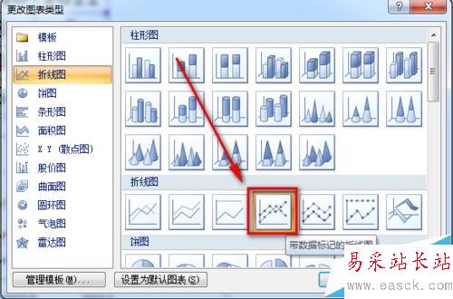 4、我們選擇普通的【帶數據標記的折線圖】并確定。