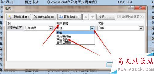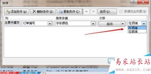 4、排序依據下選擇“字體顏色”。