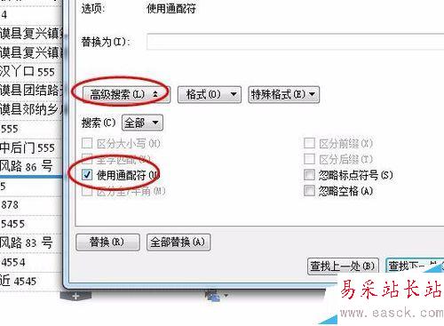 3、再在高級搜索里面點擊使用通配符。就是在前面的畫對勾就可以的