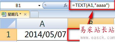 如果用公式=TEXT(A1,"aaaa"),一樣可以達(dá)到更改格式顯示的目的。