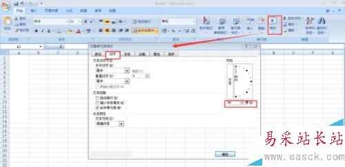 3、打開“設置單元格格式”對話框,單擊"對齊”選項卡,將“文本”方向設置為90度,單擊確定。