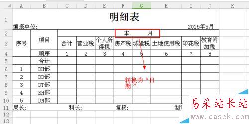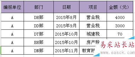 3、將保留下來(lái)的信息歸類,同屬性的用一個(gè)字段代替,例如:”營(yíng)業(yè)稅“”房產(chǎn)稅“”印花稅“等都?xì)w于”項(xiàng)目“。如下圖