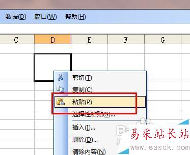10、來到D2單元格,右鍵單擊,在彈出的菜單中選擇黏貼。