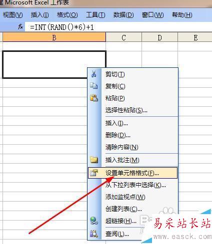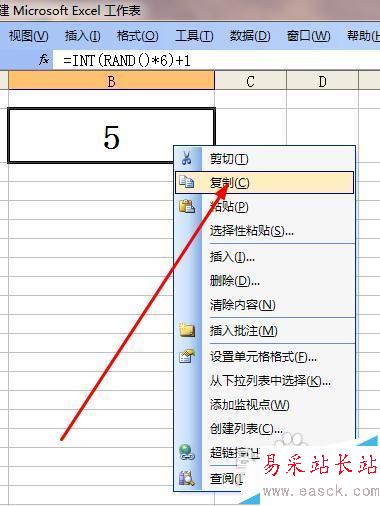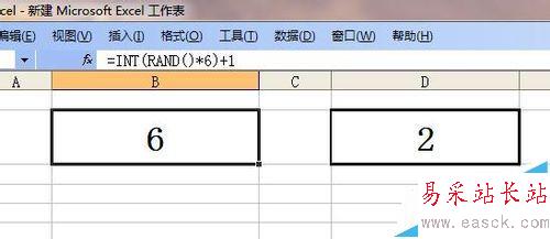 4、在單元格B2中我們輸入公式 =INT(RAND()*6)+1