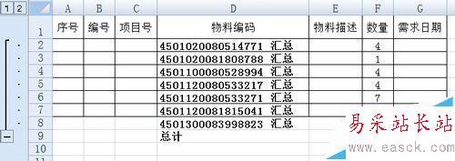 1、如下圖的匯總結果,如果只想提取第2級的物料編碼匯總結果,以下操作是不能達到目的的:點擊2級別,復制,粘貼。
