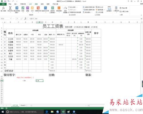 2、插入exp函數,函數的格式是=Exp( number ),number參數是底數e的指數。