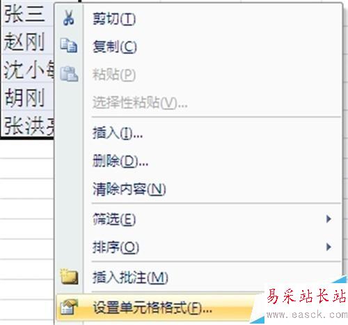 3、單擊鼠標右鍵,彈出右鍵菜單,點擊“設置單元格格式”