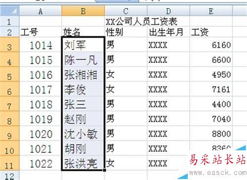 5、最后將列寬調整到最合適的寬度,整齊美觀的名單就做好了。