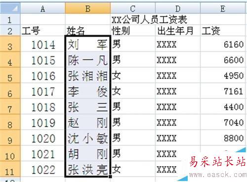 人的姓名有兩個字和三個字之分,在Excel表格中輸入姓名時為了美觀,我們通常會在兩個字的人名中間加入一個字的間距。按空格鍵是一個辦法,如果工作表的姓名特別多,這種方法還是有點麻煩,有沒有更好的方法呢?