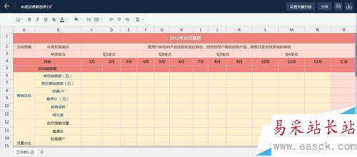 2、如單擊“年度運營規劃表1.0”的創建表格,將會看到表格的具體內容。