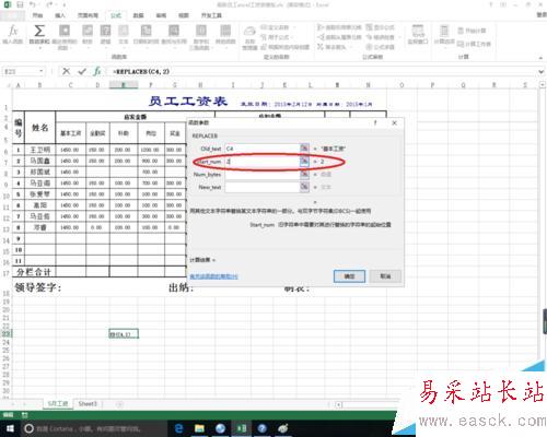 4、start_num參數是計算替換的起始位置,從左端計數,起始位為1。漢字為雙字節。