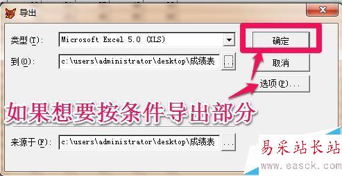 5、可以按條件導(dǎo)出部分?jǐn)?shù)據(jù),不選擇就導(dǎo)出全部。全部只能是16383條以內(nèi),如果數(shù)據(jù)超過16383條,就按條件多次導(dǎo)出在合并吧,單擊“確定”