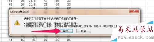 4、提示不支持多份工作表的工作簿。這里只能導(dǎo)出當(dāng)前工作表到 DBF。點(diǎn)確定。