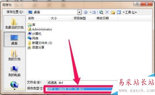 3、保存類型選擇DBF (這里有DBF 2、3、4 選 DBF4就行)