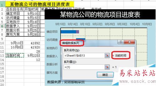 2、添加一個(gè)數(shù)據(jù)系列,系列名稱為當(dāng)前時(shí)間。