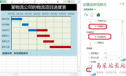 7、設(shè)置誤差線格式——正偏差——無(wú)線端——自定義。對(duì)誤差線進(jìn)行設(shè)置。