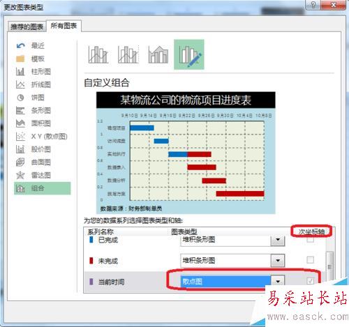 3、更改當(dāng)前時(shí)間的圖表類型——散點(diǎn)圖,次坐標(biāo)軸。
