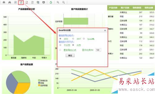 2、在展現頁面點擊【導出EXCEL】按鈕,設置導出文件版本、分頁屬性、導出路徑等屬性并導出。