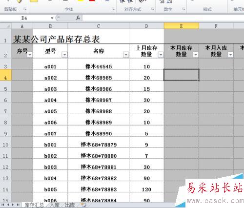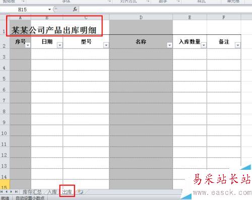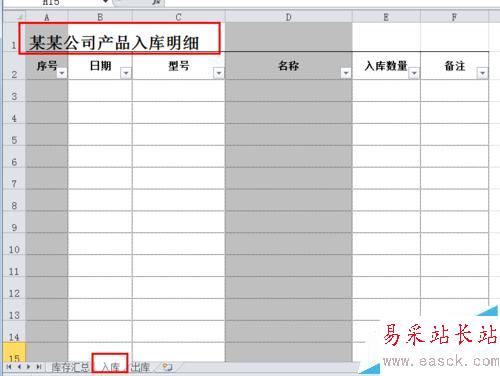 1、先在同一工作簿中作: 庫存匯總、入庫、出庫 三個表格。