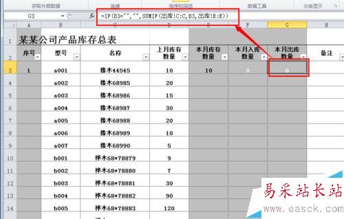 G3單元格中輸入此公式: =IF(B3="","",SUMIF(出庫!C:C,B3,出庫!E:E))
