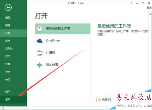 3、在打開文件選項對話窗口中,選擇中左側窗格下方的“選項”命令點擊它。如圖所示;