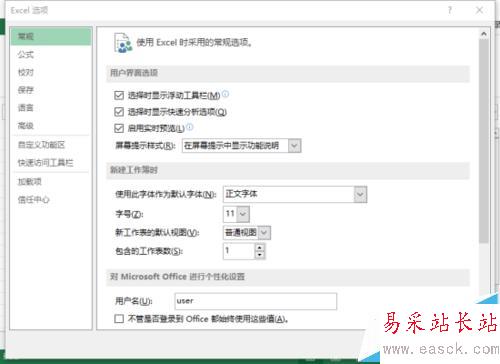 4、點擊“選項”命令后,這個時候會彈出“Excel 選項”對話窗口。如圖所示;
