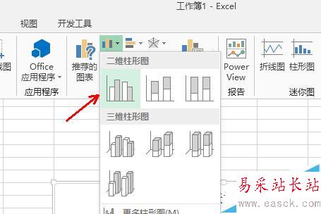 2、選中A列的數(shù)據(jù),切換到插入選項(xiàng)卡,點(diǎn)擊柱形圖,選擇第一個(gè)樣式的柱形圖,如圖所示,其他的也可以的