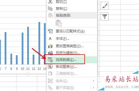3、excel已經(jīng)自動(dòng)生成了一個(gè)柱形圖,右擊圖表,點(diǎn)擊選擇數(shù)據(jù),在彈出的對(duì)話(huà)框里面點(diǎn)擊添加