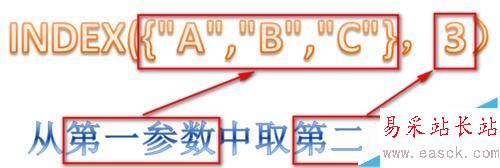 4、INDEX函數使用說明:INDE(數組,第二參數)表示從數組中提取第幾個元素。例如:INDEX({1,7,9},2)表示從{1,2,3}的數組里提取第2個元素,也就是7。