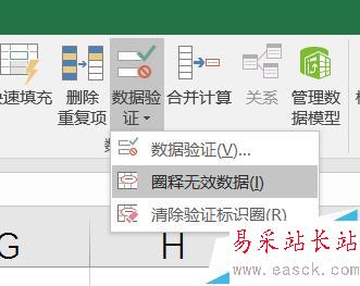 6、再次點擊數據驗證,并選擇下拉菜單中的【圈釋無效數據】,