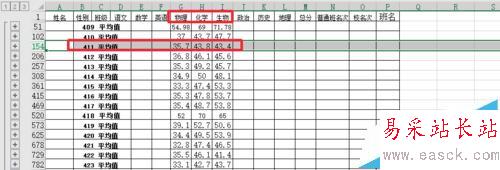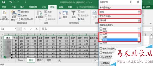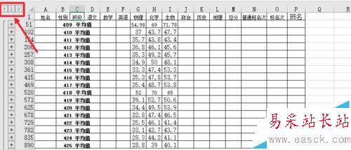 6、這樣我們可以方便的看到每個班級,物理,化學,生物的平均分。對于分類匯總的功能其實是非常多的,這里小編通過簡單實例讓大家做個簡單了解,大家多多學習。