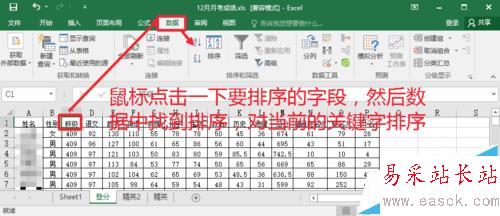 2、對分類匯總的字段排序以后,然后點擊數據中的分類匯總選項打開。