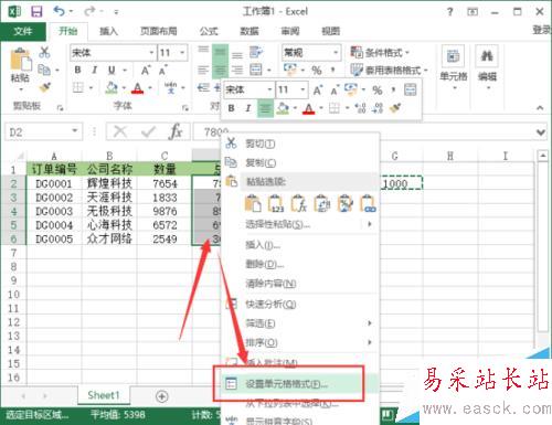 4、返回到工作表編輯窗口,點擊鼠標右鍵,在彈出的菜單列表選項中點擊“設置單元格格式”選項。如圖所示;