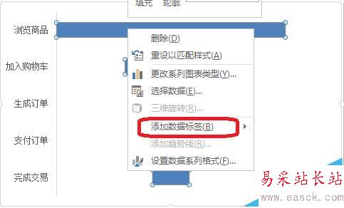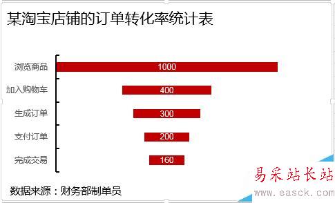 1、數據準備,如圖所示,添加如圖的占位數據。由于加入購物車——400放到中間,所以占位數據(1000-400)/2=300。由于生成訂單——300放到中間,所以占位數據(1000-300)/2=350。