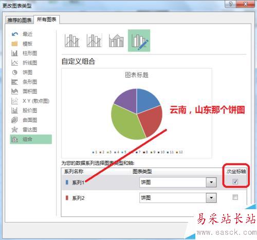 4、右擊——更改系列圖表類型——系列1(次坐標軸)。