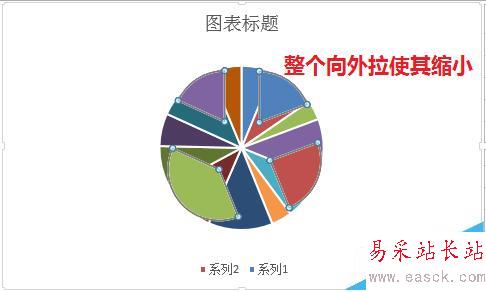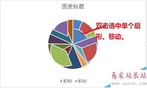 2、雙擊選中單個扇形,移動——調整。如圖所示。