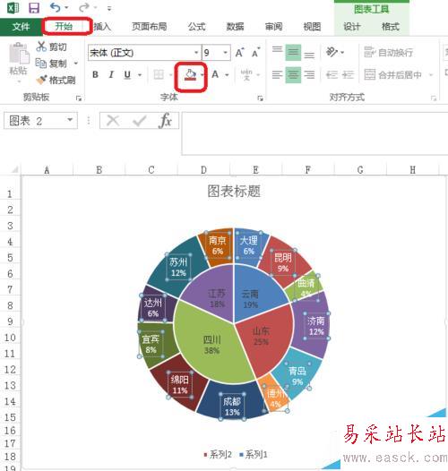 2、選中圖例——點擊開始——顏色填充(白色),更改圖例顏色。
