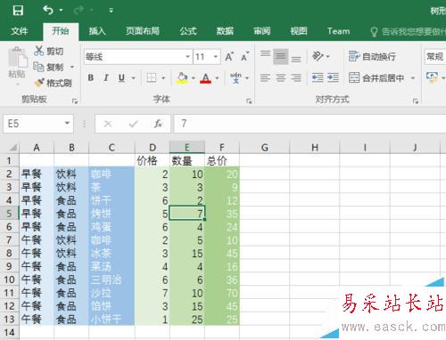1、收集、建立一定時期內的銷售數據,建立數據表。如圖為一家快餐店一天的商品銷售情況。