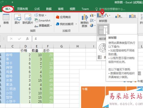 Excel 2016表格怎么繪制樹形圖分析銷售數據?