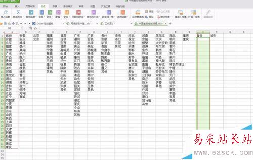 3、完成上述之后,找到原始數據中行數最多的,我這邊最多是省份列到A32,那我AG省份對的單元格選到AG32