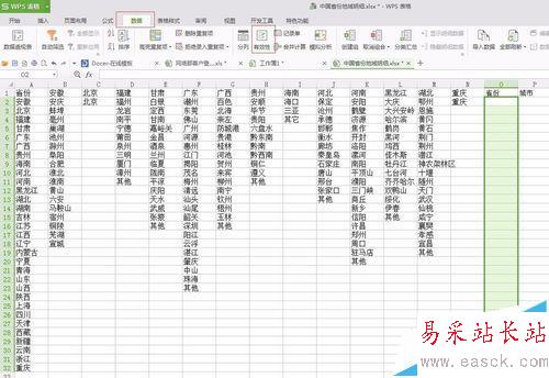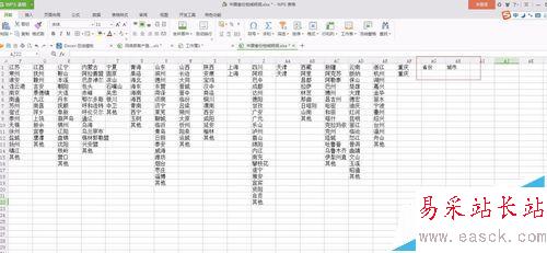 1、準備原始數據,例如小編的全國各省城市明細圖表,但是要有省的明細例,確保內容一致性。在AG,AF列輸入省份,城市,也可以在其他單元格,或者跨工作簿。
