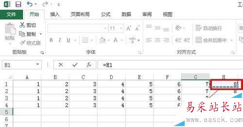2、首先在倒數第二列的數據下面的第一個單元格中輸入=H1,H1表示最后一類數的第一個單元格,下拉快速填充按鈕,如下圖2所示,盡量多一點。