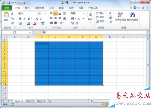 6、返回到Excel2010工作表編輯窗口,就可以看到所有添加顏色區域已經顯示網格線了。如圖所示;