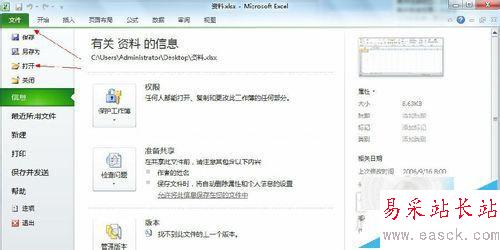1、在Excel 窗口的左上角單擊【文件】按鈕,彈出的菜單選擇【打開】命令