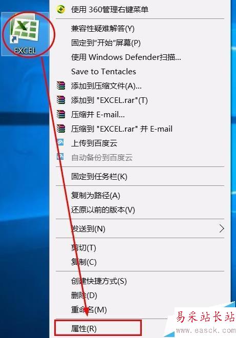 1、找到桌面excel圖標(biāo),右擊,在菜單中選擇屬性。