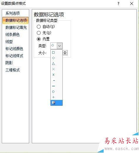 4、選擇數據標記選項,選擇類型為內置,繼續選擇圖片